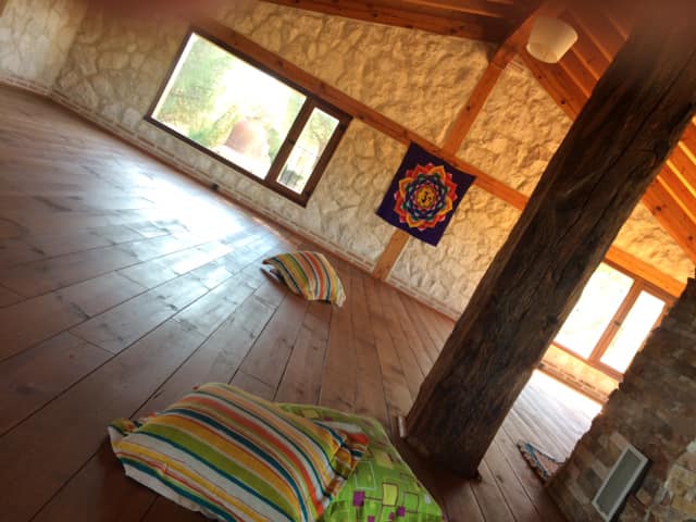 Un espacio creado para encuentros como este, con unas sencillas pero acogedoras instalaciones: en la casa principal, de madera y piedra, dormiremos en modo albergue en una misma sala; otra de las salas albergará actividades y en la planta baja el comedor; hay chimeneas, calefacción y agua caliente.