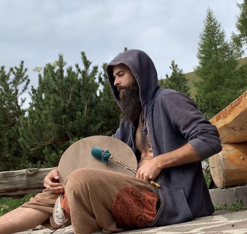 Voz y tambor en la ceremonia de cacao.